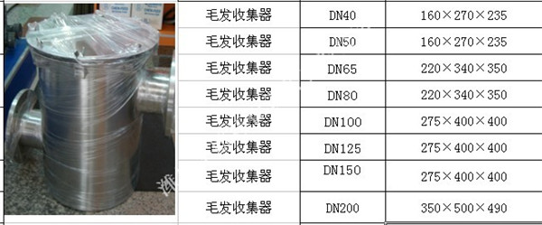 五、毛發(fā)過濾器規(guī)格表